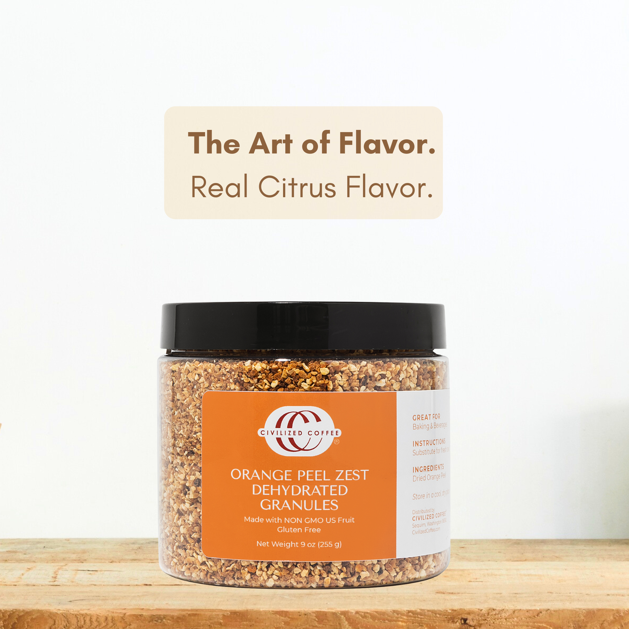Crafted from real U.S.-grown citrus, our dried orange peel zest delivers bright, concentrated flavor in a convenient, shelf-stable form. Perfect for baking, seasoning blends, sauces, marinades, or cocktails — anywhere a touch of natural sweetness and citrus depth is desired.